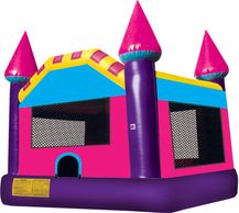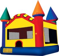 We offer three Bounce Houses (pictured below). The Fun House, The Castle, and The Dream Castle. Each is 15'x15'x16' high (requires a minimum 3' safety zone around the bounce.)